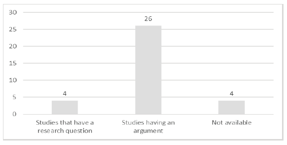 As the figure illustrates, 26 out of 34 articles have an argument. The following figure illustrates the methodological approach used by these studies.