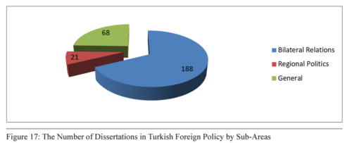 For DH, we defined several sub-categories for classification, such as “Turkish Foreign Policy” (TFP), Regional Policy, Ottoman History/Diplomacy, and European History. To discuss the aforementioned main argument that Turkish IR research has only contributed to Western-oriented IR by dealing with Turkish foreign policy and regional problems rather than through theoretical studies in IR, we have made several sub-divisions in the categories of TFP and Ottoman History/Diplomacy. Within this framework, we employed the following sub-categories: bilateral relations, regional politics, and general issues. We applied the same method to the categories of IR T+Case and IL+Case to find out which issues have been studied and why Turkish researchers have focused on these cases, taking into account international and regional events that took place during the preparation of these dissertations.
